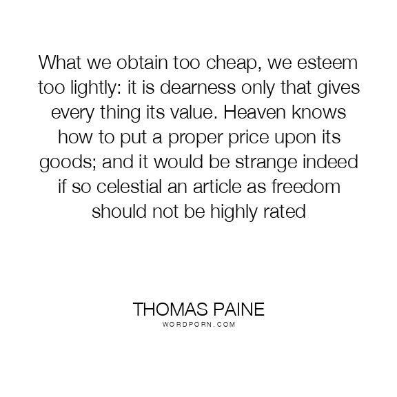 What we obtain too cheap, we esteem too lightly: it is dearness only that gives every thing its value. Heaven knows how to put a proper price upon its goods; and it would be strange indeed if so celestial an article as freedom should not be highly rated
