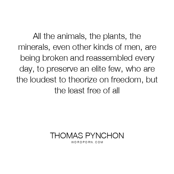 All the animals, the plants, the minerals, even other kinds of men, are being broken and reassembled every day, to preserve an elite few, who are the loudest to theorize on freedom, but the least free of all