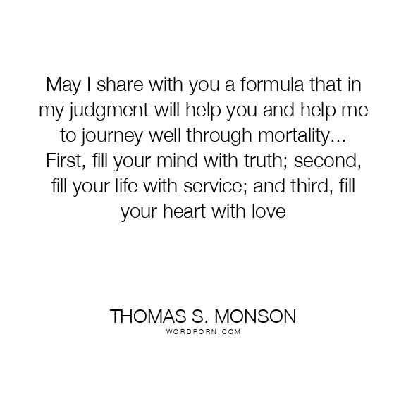 May I share with you a formula that in my judgment will help you and help me to journey well through mortality... First, fill your mind with truth; second, fill your life with service; and third, fill your heart with love