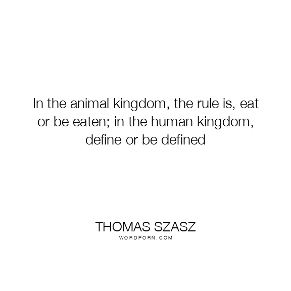 In the animal kingdom, the rule is, eat or be eaten; in the human kingdom, define or be defined