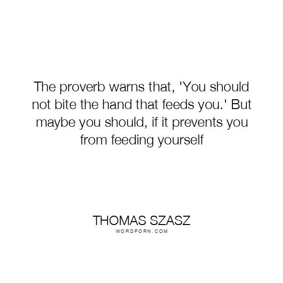 The proverb warns that, 'You should not bite the hand that feeds you.' But maybe you should, if it prevents you from feeding yourself