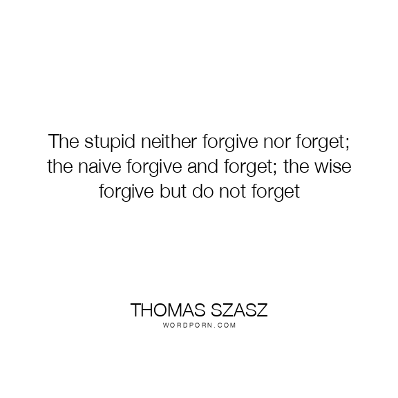 The stupid neither forgive nor forget; the naive forgive and forget; the wise forgive but do not forget