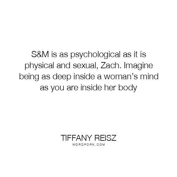 S&M is as psychological as it is physical and sexual, Zach. Imagine being as deep inside a woman’s mind as you are inside her body