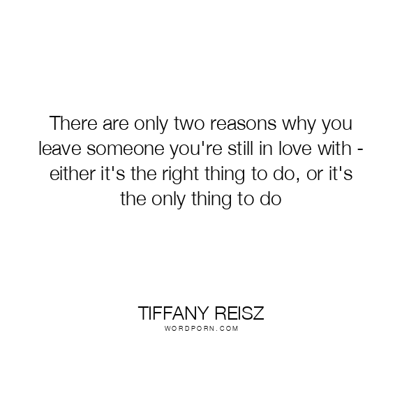 There are only two reasons why you leave someone you're still in love with - either it's the right thing to do, or it's the only thing to do