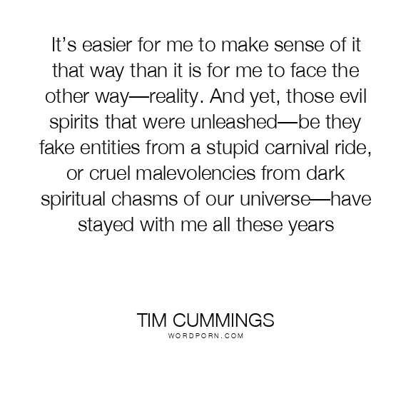 It’s easier for me to make sense of it that way than it is for me to face the other way—reality. And yet, those evil spirits that were unleashed—be they fake entities from a stupid carnival ride, or cruel malevolencies from dark spiritual chasms of our universe—have stayed with me all these years