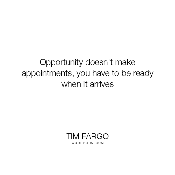 Opportunity doesn't make appointments, you have to be ready when it arrives