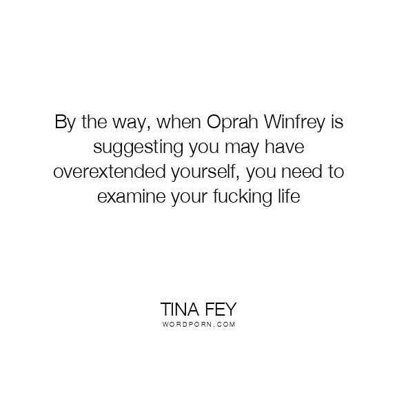 By the way, when Oprah Winfrey is suggesting you may have overextended yourself, you need to examine your fucking life