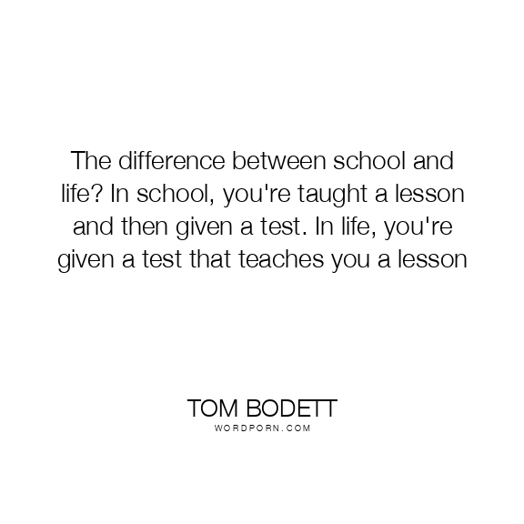 The difference between school and life? In school, you're taught a lesson and then given a test. In life, you're given a test that teaches you a lesson