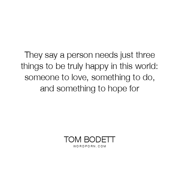 They say a person needs just three things to be truly happy in this world: someone to love, something to do, and something to hope for