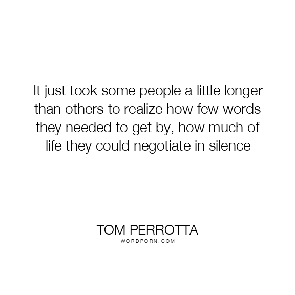 It just took some people a little longer than others to realize how few words they needed to get by, how much of life they could negotiate in silence