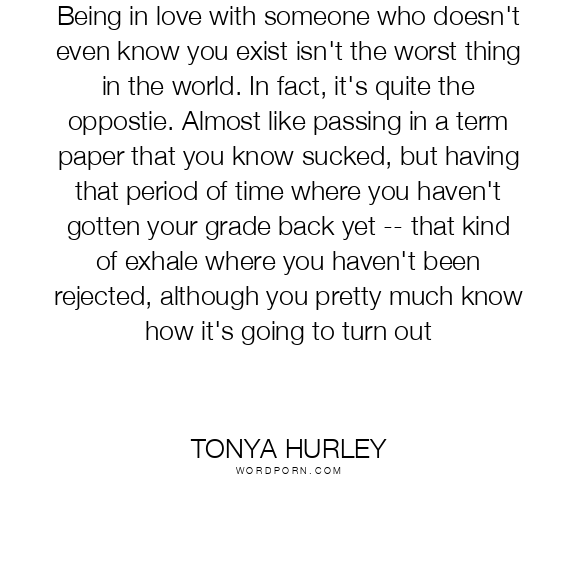 Being in love with someone who doesn't even know you exist isn't the worst thing in the world. In fact, it's quite the oppostie. Almost like passing in a term paper that you know sucked, but having that period of time where you haven't gotten your grade back yet -- that kind of exhale where you haven't been rejected, although you pretty much know how it's going to turn out