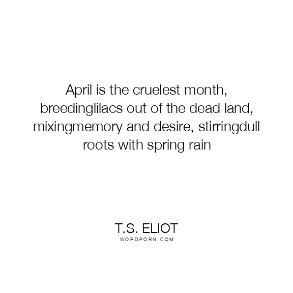 April is the cruelest month, breedinglilacs out of the dead land, mixingmemory and desire, stirringdull roots with spring rain