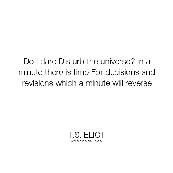 Do I dare Disturb the universe? In a minute there is time For decisions and revisions which a minute will reverse