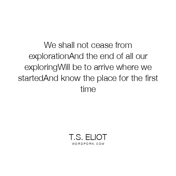 We shall not cease from explorationAnd the end of all our exploringWill be to arrive where we startedAnd know the place for the first time