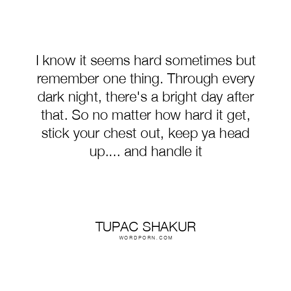 I know it seems hard sometimes but remember one thing. Through every dark night, there's a bright day after that. So no matter how hard it get, stick your chest out, keep ya head up.... and handle it