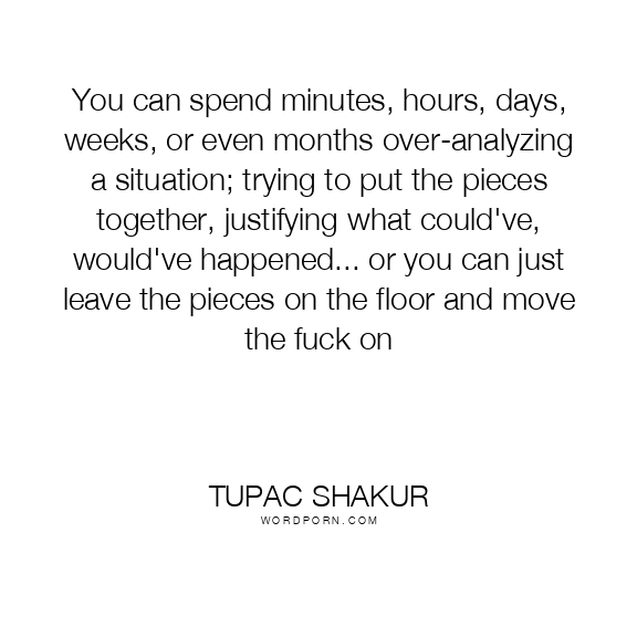 You can spend minutes, hours, days, weeks, or even months over-analyzing a situation; trying to put the pieces together, justifying what could've, would've happened... or you can just leave the pieces on the floor and move the fuck on