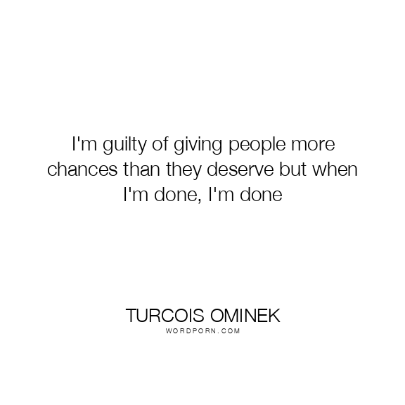 I'm guilty of giving people more chances than they deserve but when I'm done, I'm done