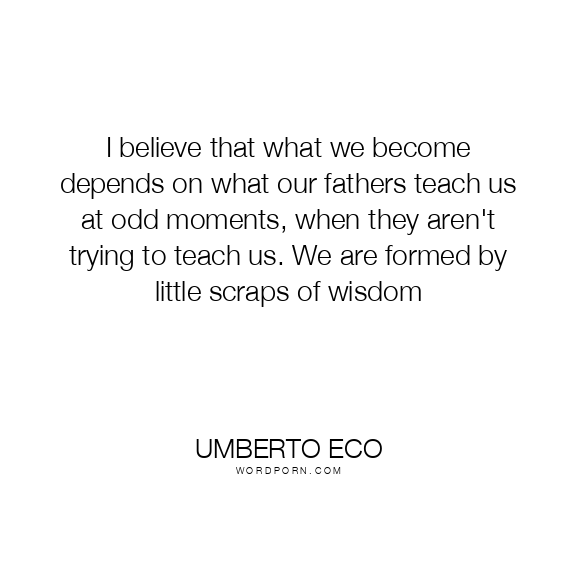 I believe that what we become depends on what our fathers teach us at odd moments, when they aren't trying to teach us. We are formed by little scraps of wisdom