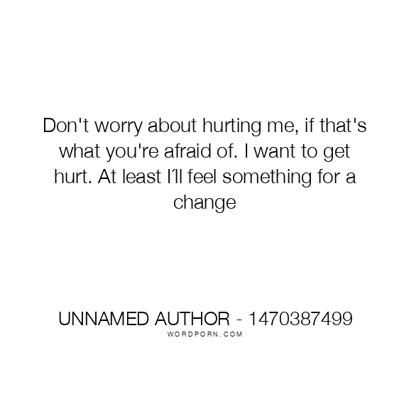 Don't worry about hurting me, if that's what you're afraid of. I want to get hurt. At least I´ll feel something for a change