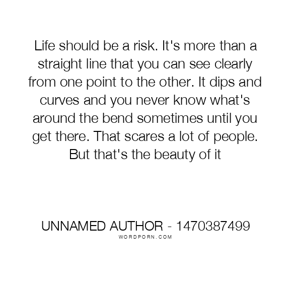 Life should be a risk. It's more than a straight line that you can see clearly from one point to the other. It dips and curves and you never know what's around the bend sometimes until you get there. That scares a lot of people. But that's the beauty of it