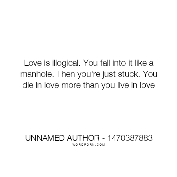 Love is illogical. You fall into it like a manhole. Then you're just stuck. You die in love more than you live in love