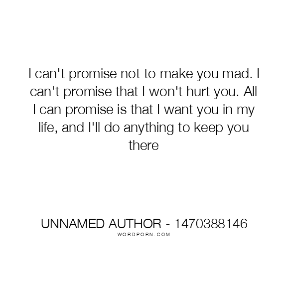 I can't promise not to make you mad. I can't promise that I won't hurt you. All I can promise is that I want you in my life, and I'll do anything to keep you there