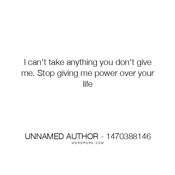 I can't take anything you don't give me. Stop giving me power over your life