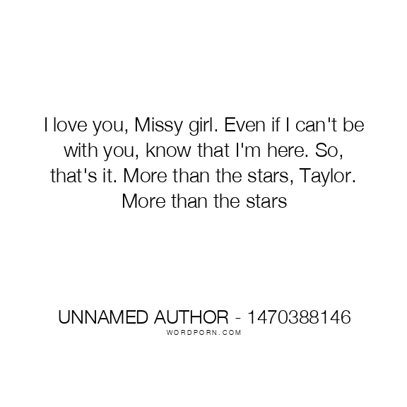 I love you, Missy girl. Even if I can't be with you, know that I'm here. So, that's it. More than the stars, Taylor. More than the stars