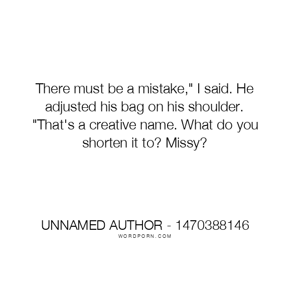 There must be a mistake," I said. He adjusted his bag on his shoulder. "That's a creative name. What do you shorten it to? Missy?