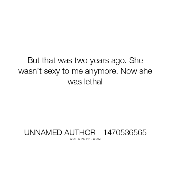 But that was two years ago. She wasn’t sexy to me anymore. Now she was lethal