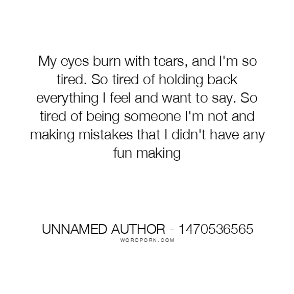 My eyes burn with tears, and I'm so tired. So tired of holding back everything I feel and want to say. So tired of being someone I'm not and making mistakes that I didn't have any fun making