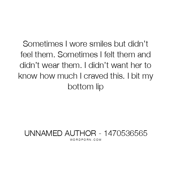 Sometimes I wore smiles but didn’t feel them. Sometimes I felt them and didn’t wear them. I didn’t want her to know how much I craved this. I bit my bottom lip