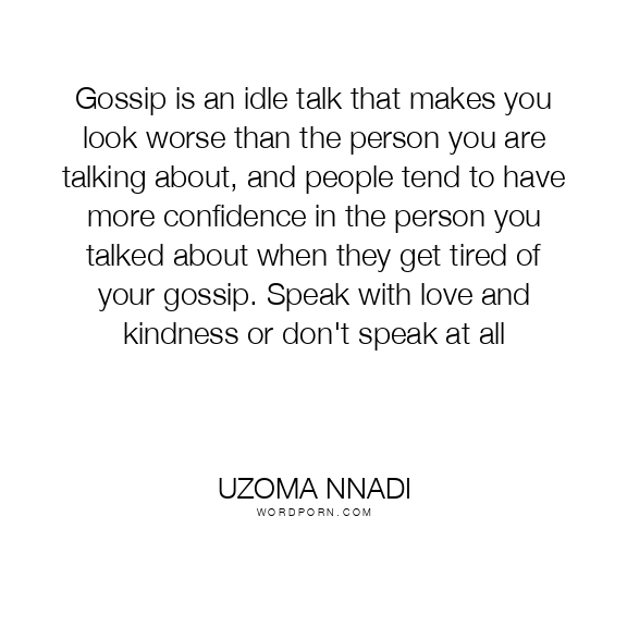 Gossip is an idle talk that makes you look worse than the person you are talking about, and people tend to have more confidence in the person you talked about when they get tired of your gossip. Speak with love and kindness or don't speak at all