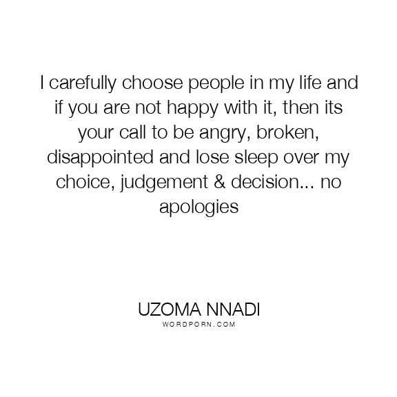 I carefully choose people in my life and if you are not happy with it, then its your call to be angry, broken, disappointed and lose sleep over my choice, judgement & decision... no apologies