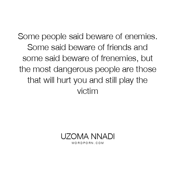 Some people said beware of enemies. Some said beware of friends and some said beware of frenemies, but the most dangerous people are those that will hurt you and still play the victim