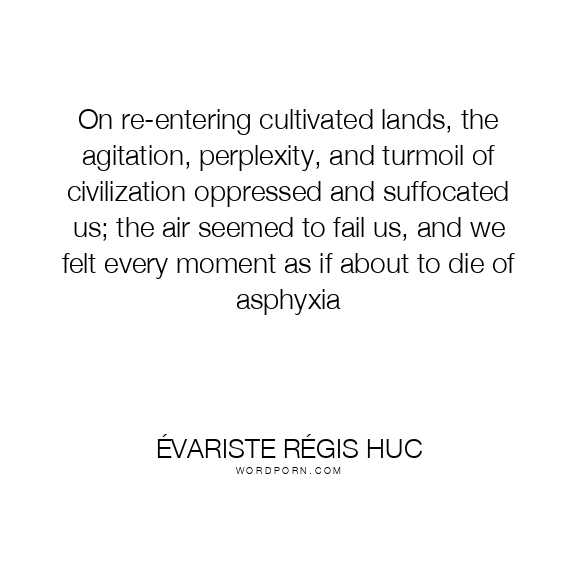 On re-entering cultivated lands, the agitation, perplexity, and turmoil of civilization oppressed and suffocated us; the air seemed to fail us, and we felt every moment as if about to die of asphyxia