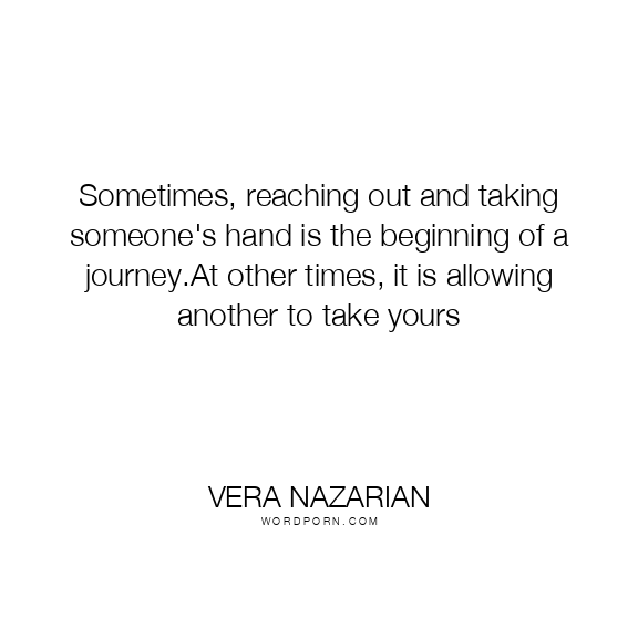 Sometimes, reaching out and taking someone's hand is the beginning of a journey.At other times, it is allowing another to take yours