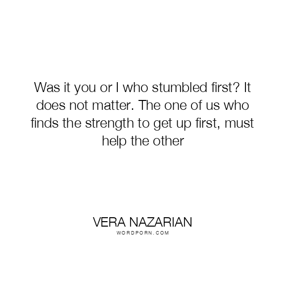 Was it you or I who stumbled first? It does not matter. The one of us who finds the strength to get up first, must help the other