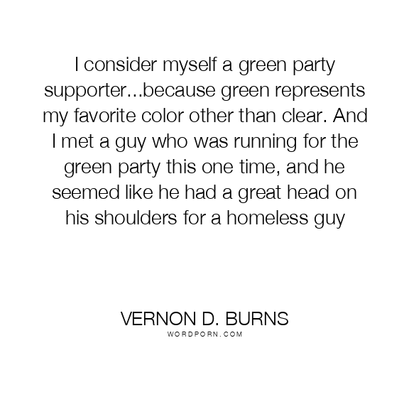 I consider myself a green party supporter...because green represents my favorite color other than clear. And I met a guy who was running for the green party this one time, and he seemed like he had a great head on his shoulders for a homeless guy