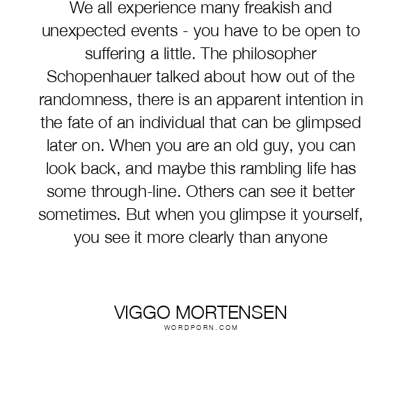 We all experience many freakish and unexpected events - you have to be open to suffering a little. The philosopher Schopenhauer talked about how out of the randomness, there is an apparent intention in the fate of an individual that can be glimpsed later on. When you are an old guy, you can look back, and maybe this rambling life has some through-line. Others can see it better sometimes. But when you glimpse it yourself, you see it more clearly than anyone