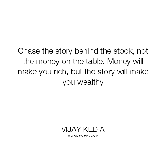 Chase the story behind the stock, not the money on the table. Money will make you rich, but the story will make you wealthy
