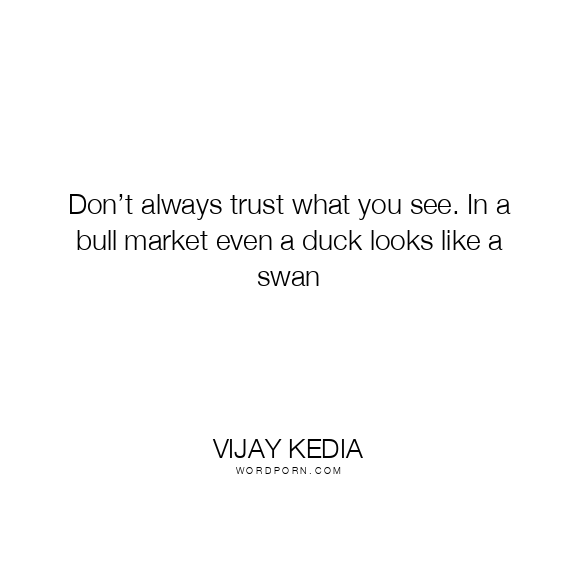 Don’t always trust what you see. In a bull market even a duck looks like a swan