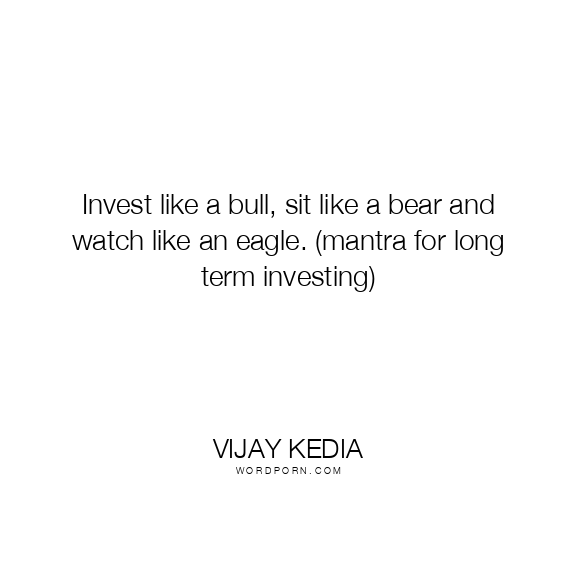 Invest like a bull, sit like a bear and watch like an eagle. (mantra for long term investing)