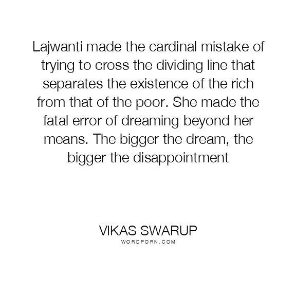 Lajwanti made the cardinal mistake of trying to cross the dividing line that separates the existence of the rich from that of the poor. She made the fatal error of dreaming beyond her means. The bigger the dream, the bigger the disappointment