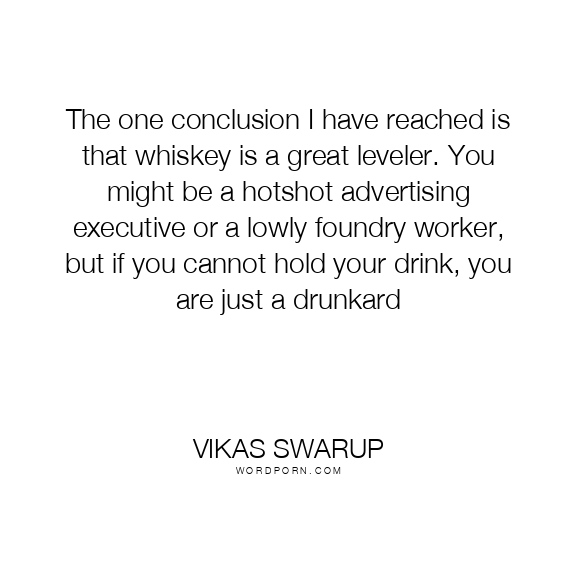 The one conclusion I have reached is that whiskey is a great leveler. You might be a hotshot advertising executive or a lowly foundry worker, but if you cannot hold your drink, you are just a drunkard