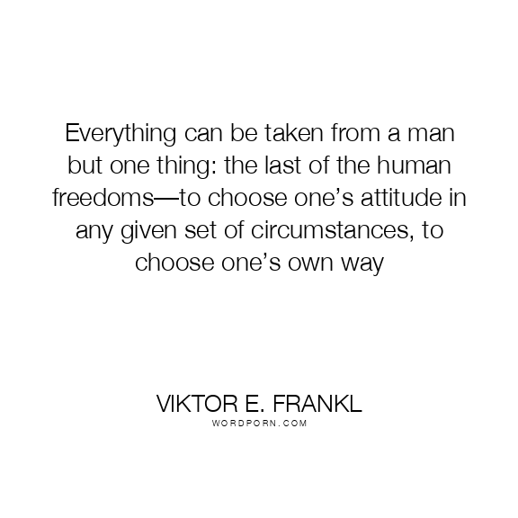 Everything can be taken from a man but one thing: the last of the human freedoms—to choose one’s attitude in any given set of circumstances, to choose one’s own way