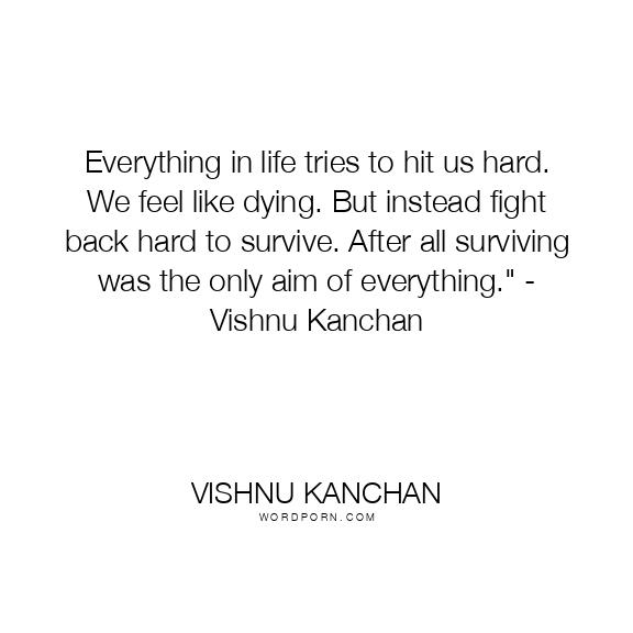Everything in life tries to hit us hard. We feel like dying. But instead fight back hard to survive. After all surviving was the only aim of everything." - Vishnu Kanchan