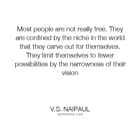 Most people are not really free. They are confined by the niche in the world that they carve out for themselves. They limit themselves to fewer possibilities by the narrowness of their vision