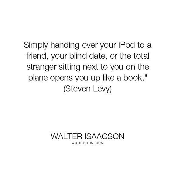 Simply handing over your iPod to a friend, your blind date, or the total stranger sitting next to you on the plane opens you up like a book." (Steven Levy)