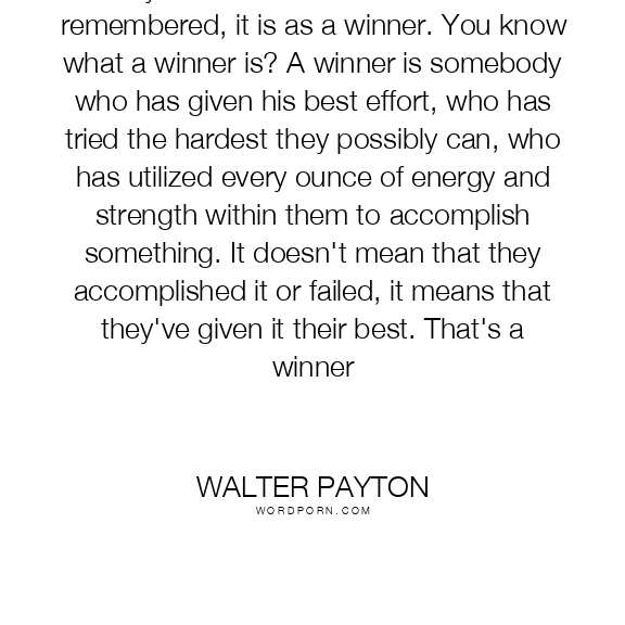 If you ask me how I want to be remembered, it is as a winner. You know what a winner is? A winner is somebody who has given his best effort, who has tried the hardest they possibly can, who has utilized every ounce of energy and strength within them to accomplish something. It doesn't mean that they accomplished it or failed, it means that they've given it their best. That's a winner